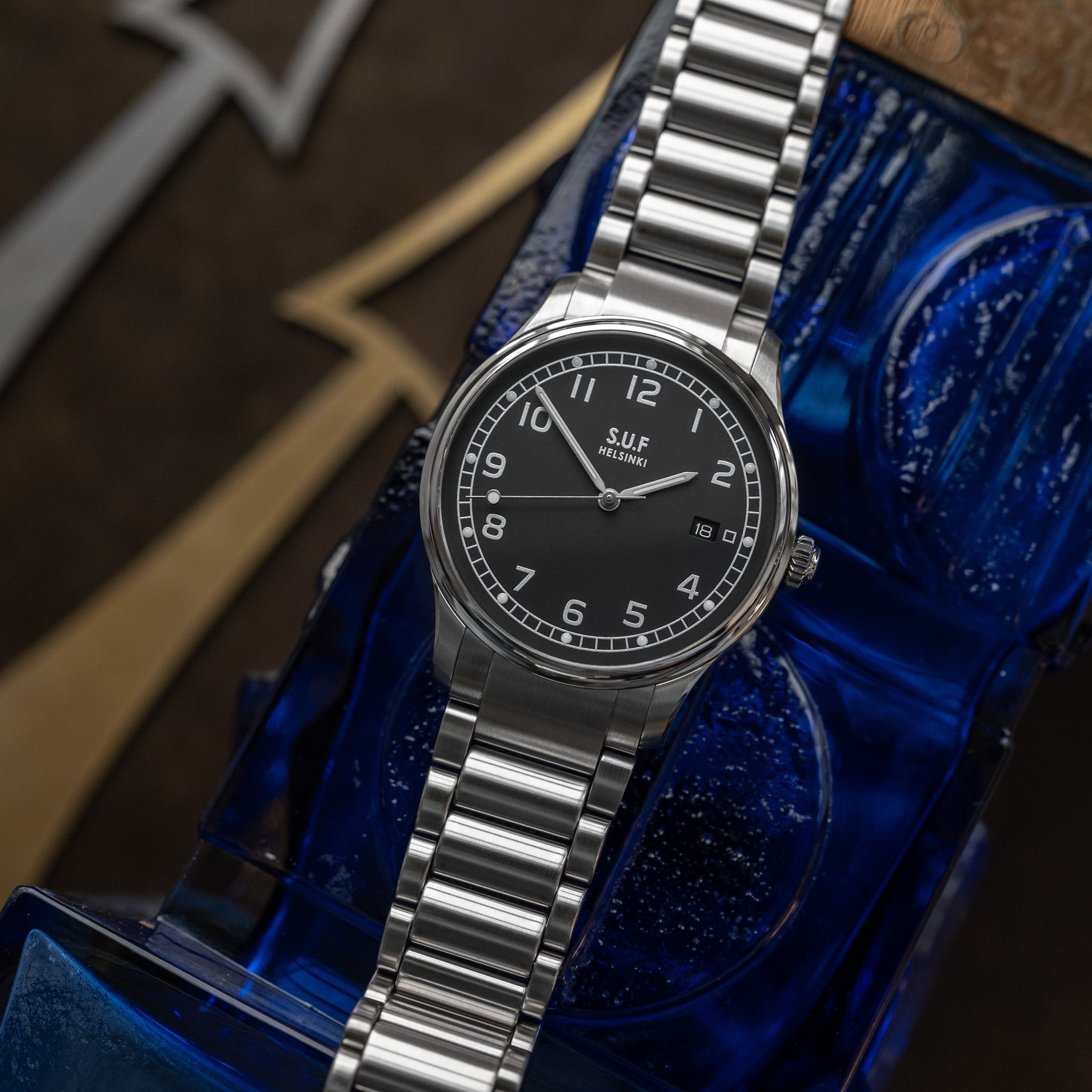It was early 2000 when Stepan Sarpaneva started a conversation with a good friend at Maison Maspoli SA. Shortly after, we are happy to have a SWISS MADE steel bracelet made for us. Made the traditional way, with traditional tools, hand-assembled and finished.