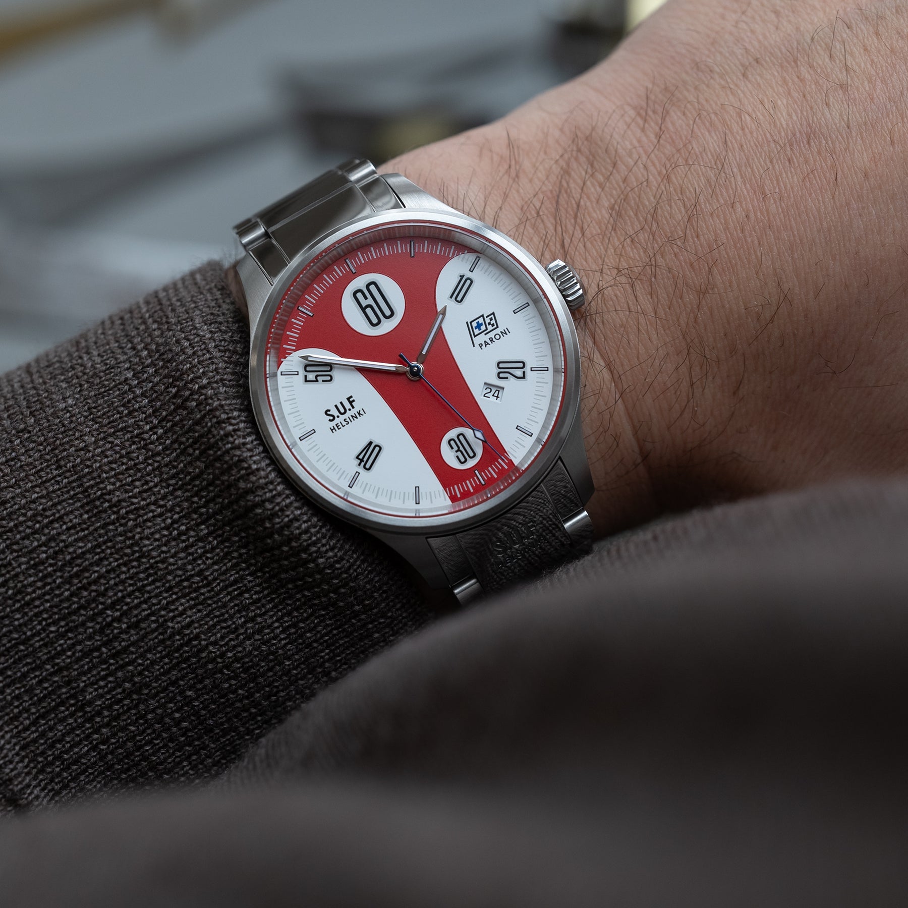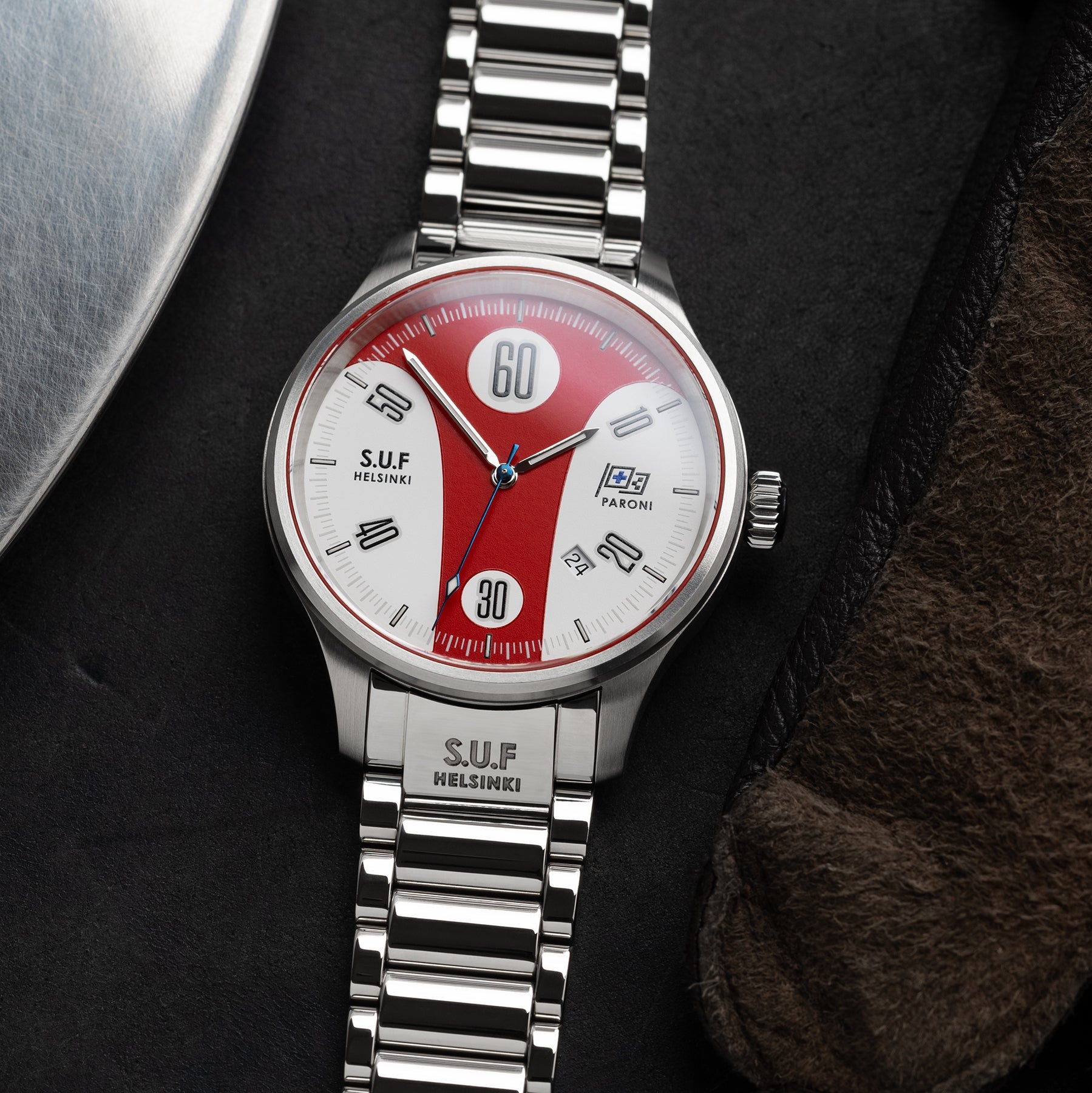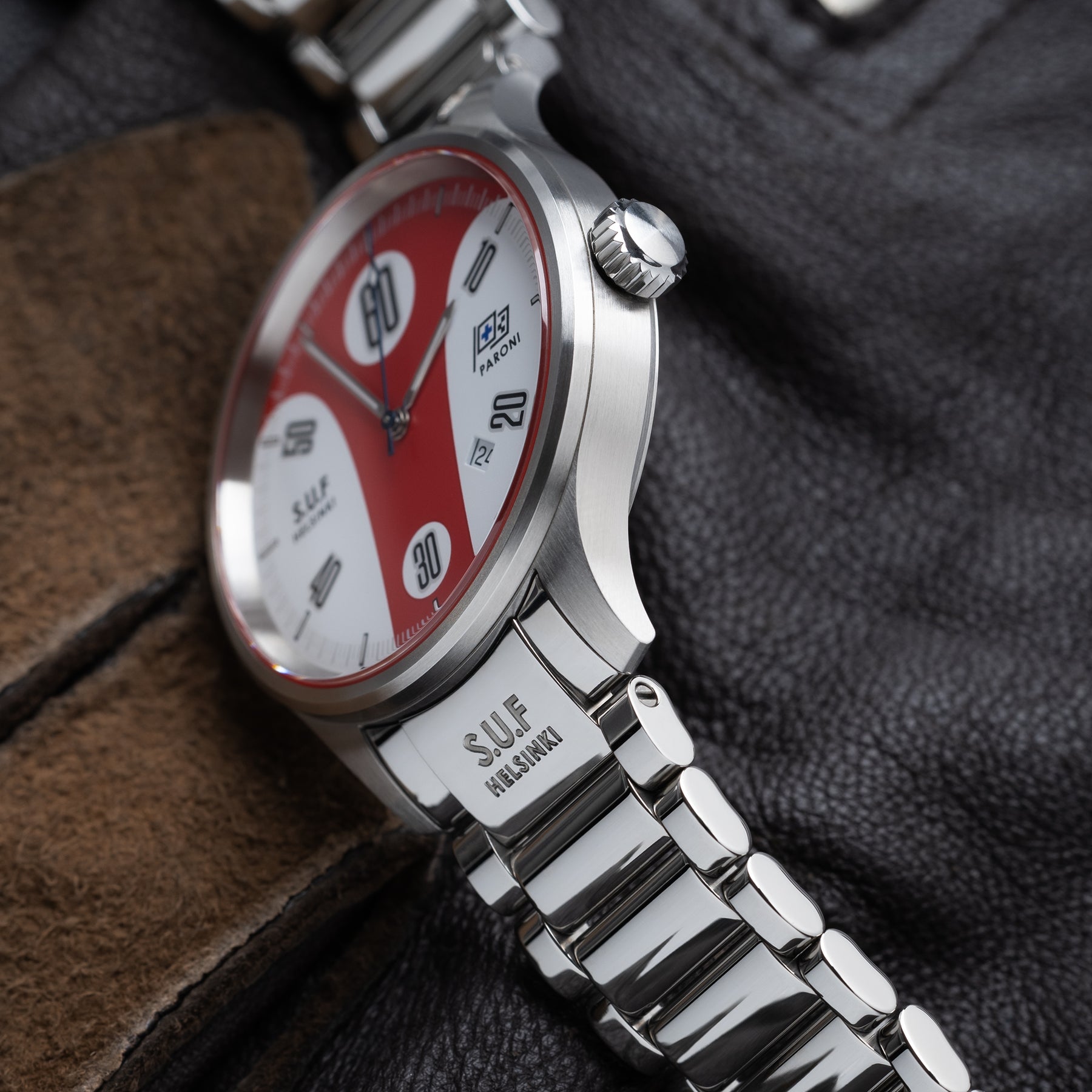 It was early 2000 when Stepan Sarpaneva started a conversation with a good friend at Maison Maspoli SA. Shortly after, we are happy to have a SWISS MADE steel bracelet made for us. Made the traditional way, with traditional tools, hand-assembled and finished.