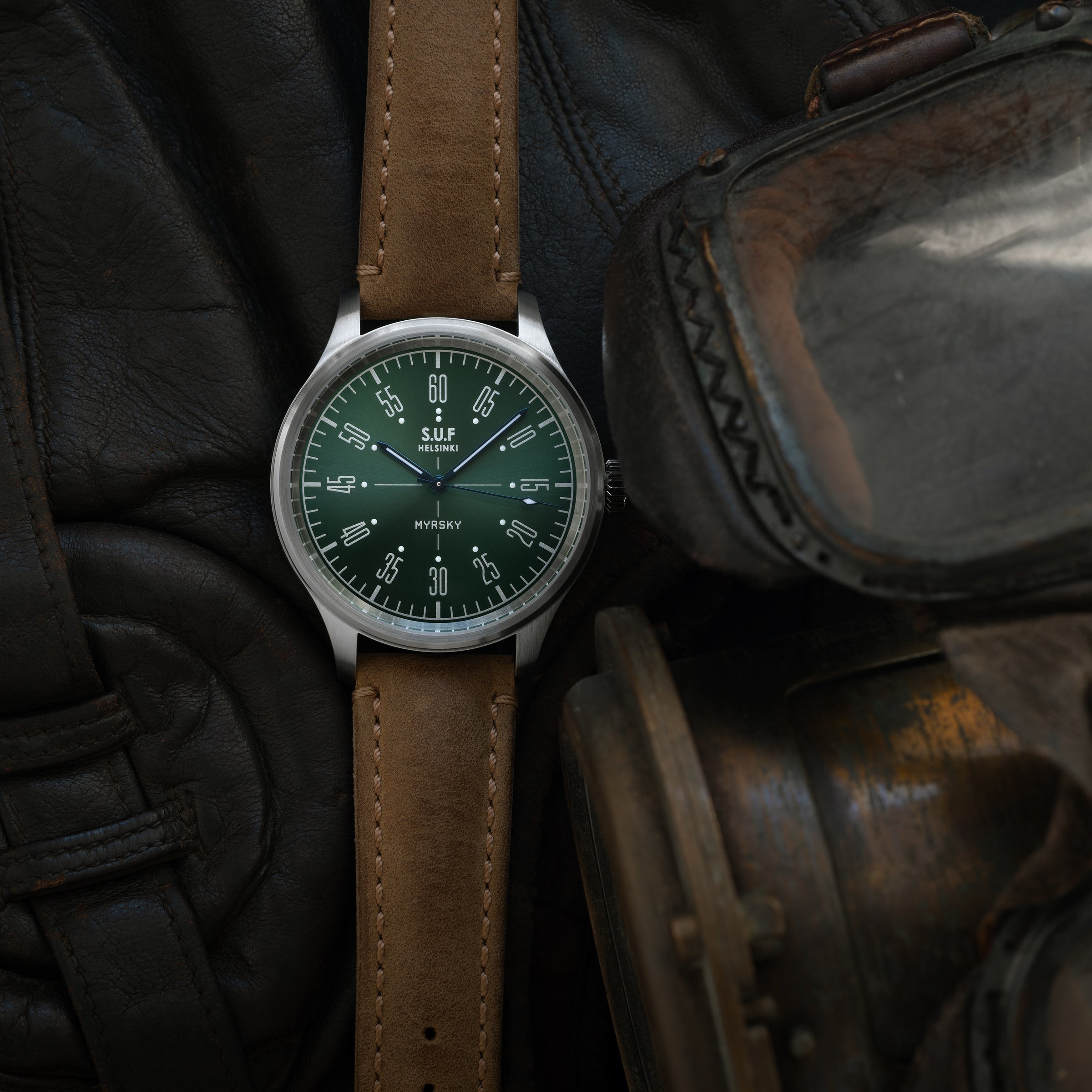 S.U.F’s Myrsky watch, inspired by vintage cockpit instrumentation, salutes the plane’s brave, tireless designers and the fighter aces of Finland who gave their dearest in the effort to protect their homes.